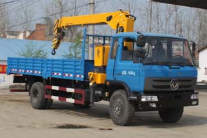 選裝駕駛室前圍面闆,進氣格栅,前保險杠及前部燈具。選裝無爬梯結構時貨廂長(mm)爲5800。吊機型号/吊機重量(kg)/最大起升載荷(kg)/整備質量(kg)/載質量(kg)/分别爲: 1,(SQ8SA3)/3000/8000/10090/5715;2,(SQ7SA3, SQ7SA2): 2070/7000/9160/6645。整車長/前懸/後懸/軸距(mm)對應關系爲:9000/1250/2650/5100, 9000/1430/2470/5100。該車僅選用5100mm軸距。防護材料:Q235A碳鋼,連接方式:左右側面與箱體底面採用焊接連接, 後下防護與平闆採用焊接連接,斷面尺寸(mm):110×50×5,後部防護離地高度(mm):405。該車選用發動機型号: ISB170 40,ISB190 40,YC6J180-46對應的油耗值分别爲(L/100km): 28.0,28.0,28.0。安裝帶有衛星定位功能的行駛記錄儀。 ABS型号爲3631010-C2000,生産廠家爲東風電子科技股份有限公司汽車制動系統公司。