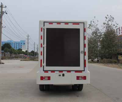 該車是用於廣告宣傳和科普宣傳的專用車輛。随底盤選裝不帶導流罩的駕駛室,兩側均可選裝:LED升降或者不帶升降屏, 滾軸燈箱,條屏, 活動舞台; 後部可選裝:通風口,後開門; 前部可選裝通風口或LED條屏。該車側部和後部爲群闆結構,替代側防和後防,故豁免。側裙闆距地360mm,後裙闆距地480mm。