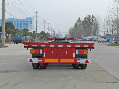 牽引銷處車架高度爲210mm。該車爲小鵝頸式結構。該車用於運輸48英尺集裝箱。防護材料:Q235;連接方式:左右側面及後下部防護裝置均採用焊接連接,後下部防護斷面尺寸(mm):170×50,後下部防護離地高度(mm):540。ABS系統控制器型号: CM2XL-4S/2K (4S/2M );ABS系統控制器生産廠家:廣州市科密汽車制動技術開發有限公司。採用集裝箱半挂牽引車。