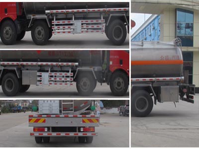 該車适用於(yú)危險品運輸,運輸介質:汽油,介質密度爲:0.7噸/立方米,類項号:3;罐體有效容積:24.1立方米, 罐體外形尺寸(長×長軸×短軸)(mm)爲:7700×2480×1880。防護材料:Q235A碳鋼,連接方式:左右側面及後下部防護均採(cǎi)用焊接連接,後部防護斷面尺寸(mm):135×50,後部防護離地高度(mm):520。僅採(cǎi)用底盤子午線輪胎和帶ABS的底盤; 該車前輪安裝盤式制動器,前置排氣管,裝配限速裝置,限速79km/h。安裝帶有衛星定位功能的行駛記錄儀。ABS生産廠家/型号:長春科密汽車制動有限公司/CM4XL。車輛顔色可選,文字噴塗位置可變化。