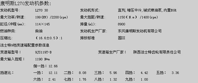 | 燃料種類: | 柴油 | 彈簧片數: | 8/8/10,3/3/4 |