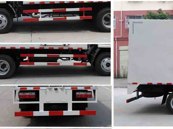 廂内裝備維修工作台, 工具箱等工程作業專用設備。側防護和後防護裝置材料:Q235A碳鋼, 焊接, 後防護斷面尺寸(寬×高)(mm)50×100, 離地高400mm; 僅選用底盤軸距3308mm; ABS廠家及型号:襄陽東風隆誠機械有限責任公司/ABS/ASR-24V-4S/4M.随底盤選裝駕駛室. | |||