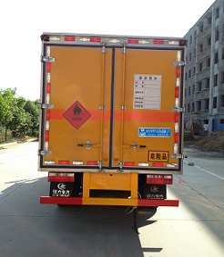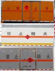 廂體頂部封閉, 不可開啓。選裝側門型式及位置。該車主要用於運輸獨立容器(瓶)包裝的介質:粘合劑, 塗料, 料溶液, 油漆, 煤油, 機油, 苯, 甲醇, 乙醇, 丙酮, 甲苯, 二甲苯, 類項号: 3。安裝限速裝置, 限速80km/h。該車安裝帶有衛星定位功能的行駛記錄儀。安全裝置爲導靜電帶, 用於防止靜電。僅採用前盤制動器和安裝ABS的底盤。排氣管前置。僅採用子午線輪胎。側防護和後防護裝置材料材質爲Q235A碳鋼, 側防護與箱體底部焊接連接, 後防護裝置與車架採用焊接連接。後防護截面尺寸(mm):110×50, 離地高度爲440mm。發動機4B2-95C50, WP2.1Q95E50分别對應的油耗值爲:16.38, 16.18。ABS生産廠家/型号:上海萬捷汽車控制系統有限公司/VIE ABS-II。 | |||