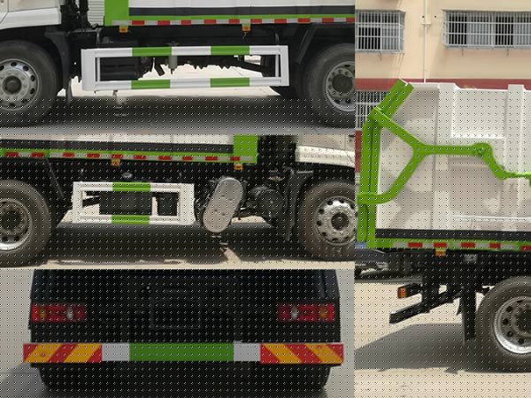 其它 | 1、該車僅選用3950mm軸距底盤改裝,頂部密閉不可開啓。2、整車長/前懸尺寸對應關系爲(mm):7130/1430,7100/1400。駕駛室準乘人數/額定載質量的對應關系爲:2人/8320kg,3人/8255kg。3、防護材料:Q235B碳鋼,連接方式:左右側面及後下部防護均採(cǎi)用焊接連接,後部防護斷面尺寸(mm):120×50,後部防護離地高度(mm):480。4、安裝具有衛星定位功能的行駛記錄儀。5、ABS型号/生産廠家:3631010-C2000/東科克諾爾商用車制動系統(十堰)有限公司,ABS 8/東科克諾爾商用車制動系統(十堰)有限公司, 4460046450/威伯科汽車控制系統(中國)有限公司。6、發動機對應油耗值(L/100km)爲:DDi50E190-60/23.4,D4.5NS6B190/23.5,D6.7NS6B230/23.2,B6.2NS6B210/23.4,B6.2NS6B230/23.4。7、專用裝置:箱體,主要用於(yú)壓縮站垃圾轉運;卸料方式爲後卸。8、随底盤選裝駕駛室。 | ||