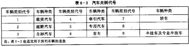 (2)車輛類别代号,各類車輛類别代号位於産品型号的第二部分,用一位阿拉伯數字表示,其意義按表0-2規定。