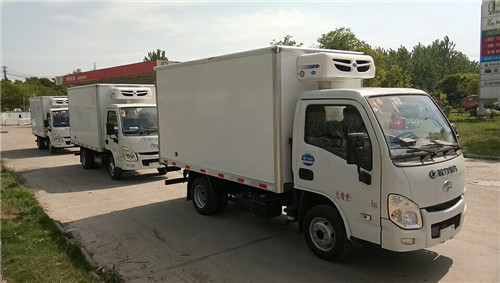躍進小福星藍牌冷藏車廂體尺寸:3305x1540x1650mm,整車尺寸:5200*1730*2560mm, 冷藏廂體採用内外飾玻璃鋼;中間夾層保溫材料採用聚氨酯切片真空負壓一次複合成型;厚度8cm, 符合國家衛生部頒布食品等級要求,雙後開門門框架全部採用玻璃鋼制成的整體框架,雙後門中縫帶斜度,開關方便。門邊框密封採用進口優質橡膠(三元乙丙)密封條進行密封,保證廂體保溫效果的穩定性,門邊,門鎖及附件均爲不鏽鋼制作,不開側門。配國産漢雪非獨立機組型号L-Z16,制冷溫度達到-15度,駕駛室内可随意調節。